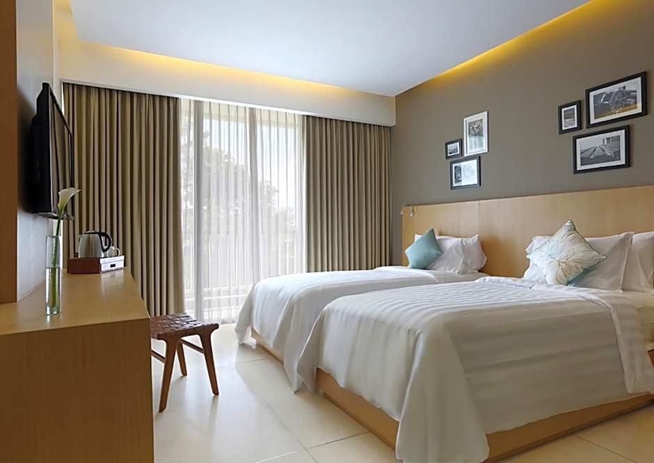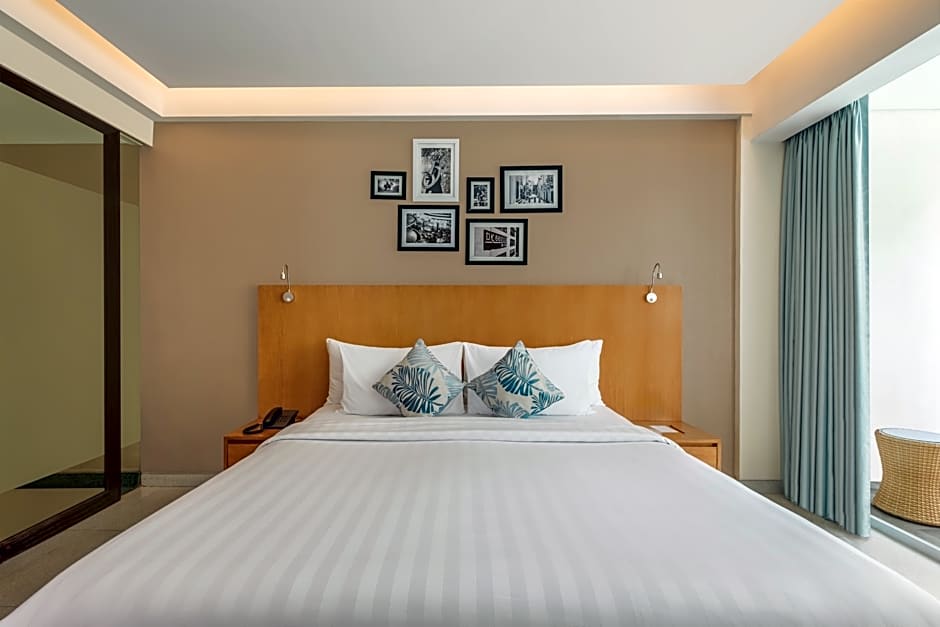 Fitted with a private balcony overlooking the pool, this air-conditioned, personal safe and a flat-screen cable TV with DVD player. The private bathroom has a shower, hairdryer and free toiletries. A mini-bar and tea/coffee-making facilities are also provided.